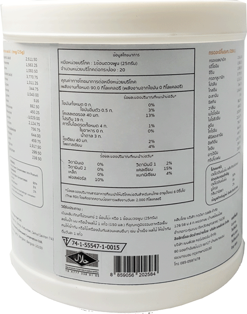 ข้อควรระวัง : ไม่เหมาะแก่ผู้แพ้โปรตีนจากนม และผู้ป่วยไตเสื่อมเรื้อรัง