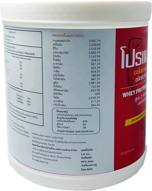 • มีกรดอะมิโนจำเป็นครบทั้ง 8 ชนิด โดยเฉพาะกรออะมิโนสายกิ่งที่สร้างกล้ามเนื้อปริมาณสูง