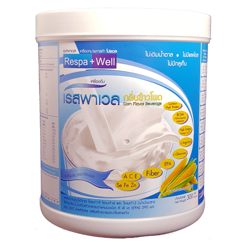 เรสพาเวล เครื่องดื่มทดแทนมื้ออาหารสูตรอาหารครบถ้วน โปรตีนคุณภาพสูง เสริมกรดอะมิโนที่จำเป็นต่อกล้ามเนื้อของการหายใจ ได้แก่ อาร์จินีน กลูตามีน นิวคลีโอไทด์ รวมถึงกรดอะมิโนสายกิ่ง(BCAA) ทำให้ความสามารถในการรับอาหารของผู้ป่วยเพิ่มมากขึ้น ช่วยให้มวลกล้ามเนื้อแข็งแรง โดยเฉพาะกล้ามเนื้อปอดและกระบังลม ได้รับออกซิเจนเพิ่มขึ้น ลดปริมาณคาร์บอนไดออกไซด์ลง ช่วยฟื้นฟูร่างกาย มีใยอาหารสูง ไขมันสูง ให้พลังงานสูง อุดมด้วยสารอาหารเสริมความแข็งแรงของกล้ามเนื้อหายใจและภูมิคุ้มกัน