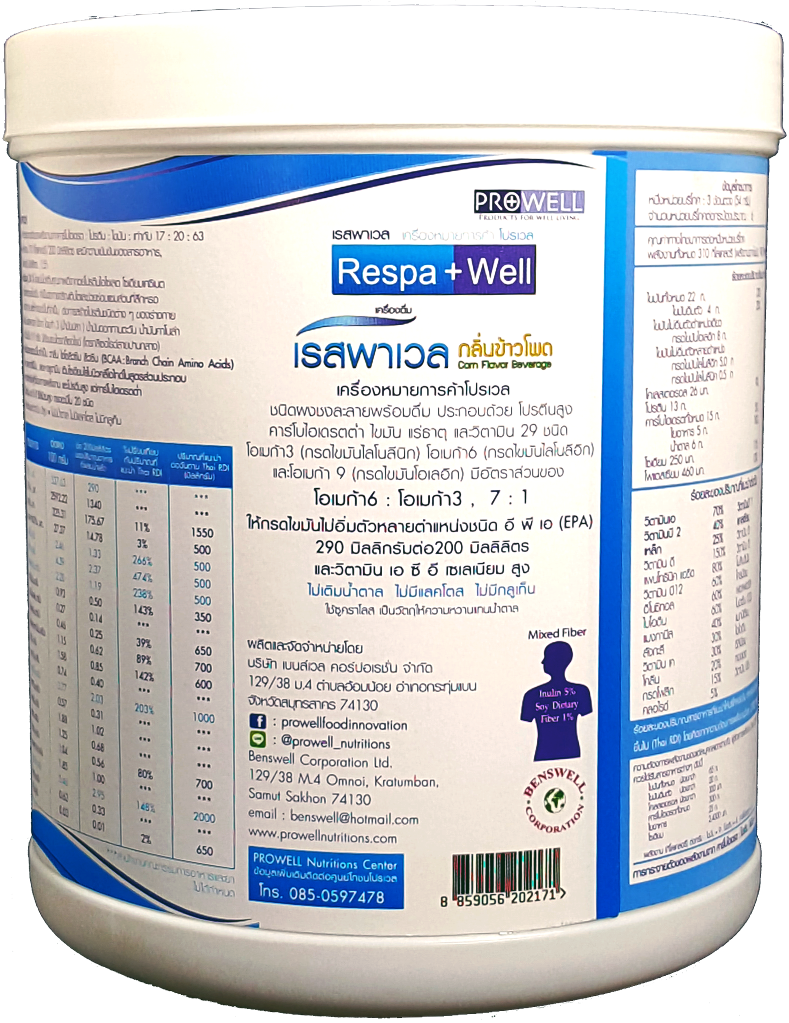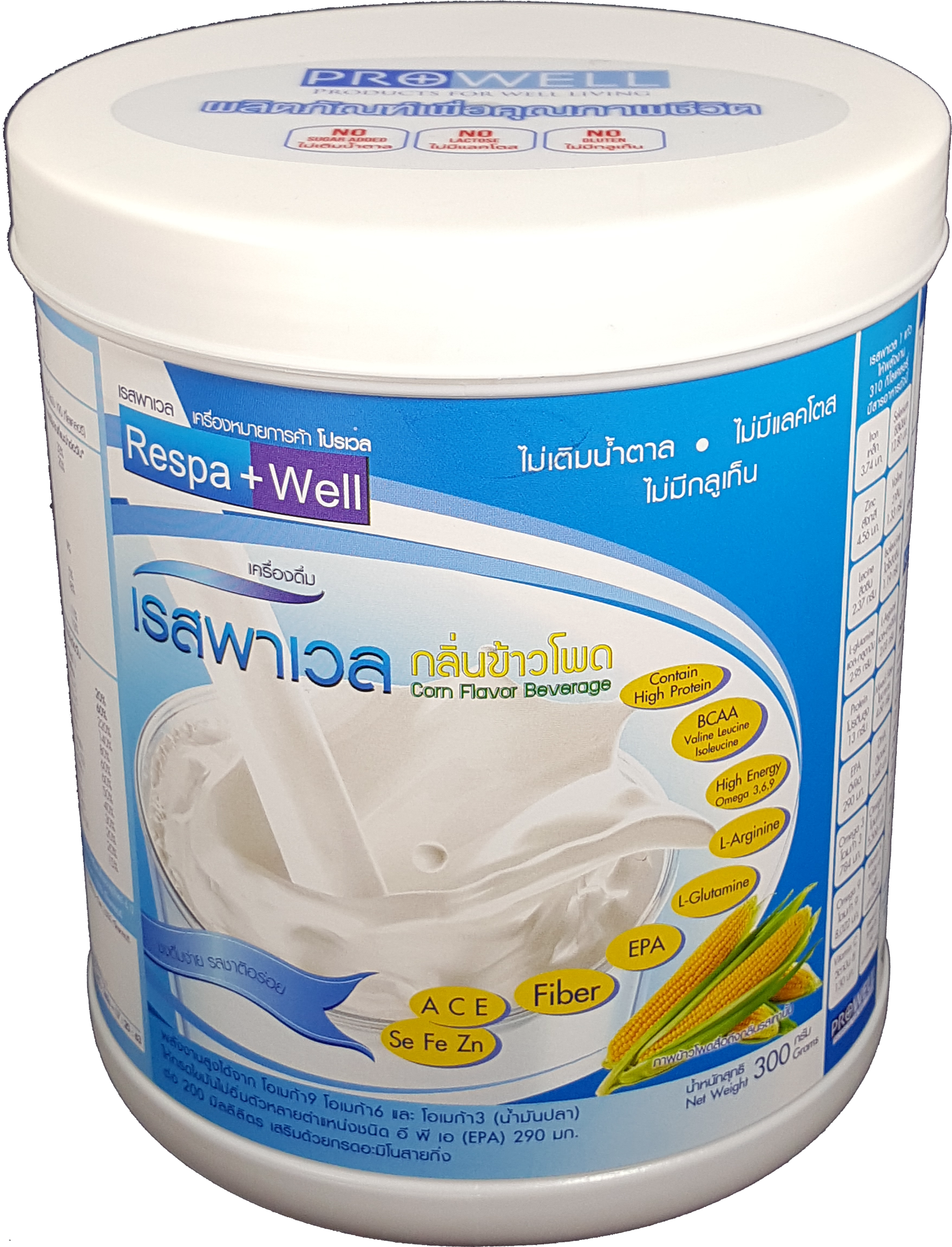 เรสพาเวล (Respawell) 300 กรัม เครื่องดื่มโปรตีนสูง กรดอะมิโนเพิ่มมวลกล้ามเนื้อสูง ลด CO2 กลิ่นข้าวโพด