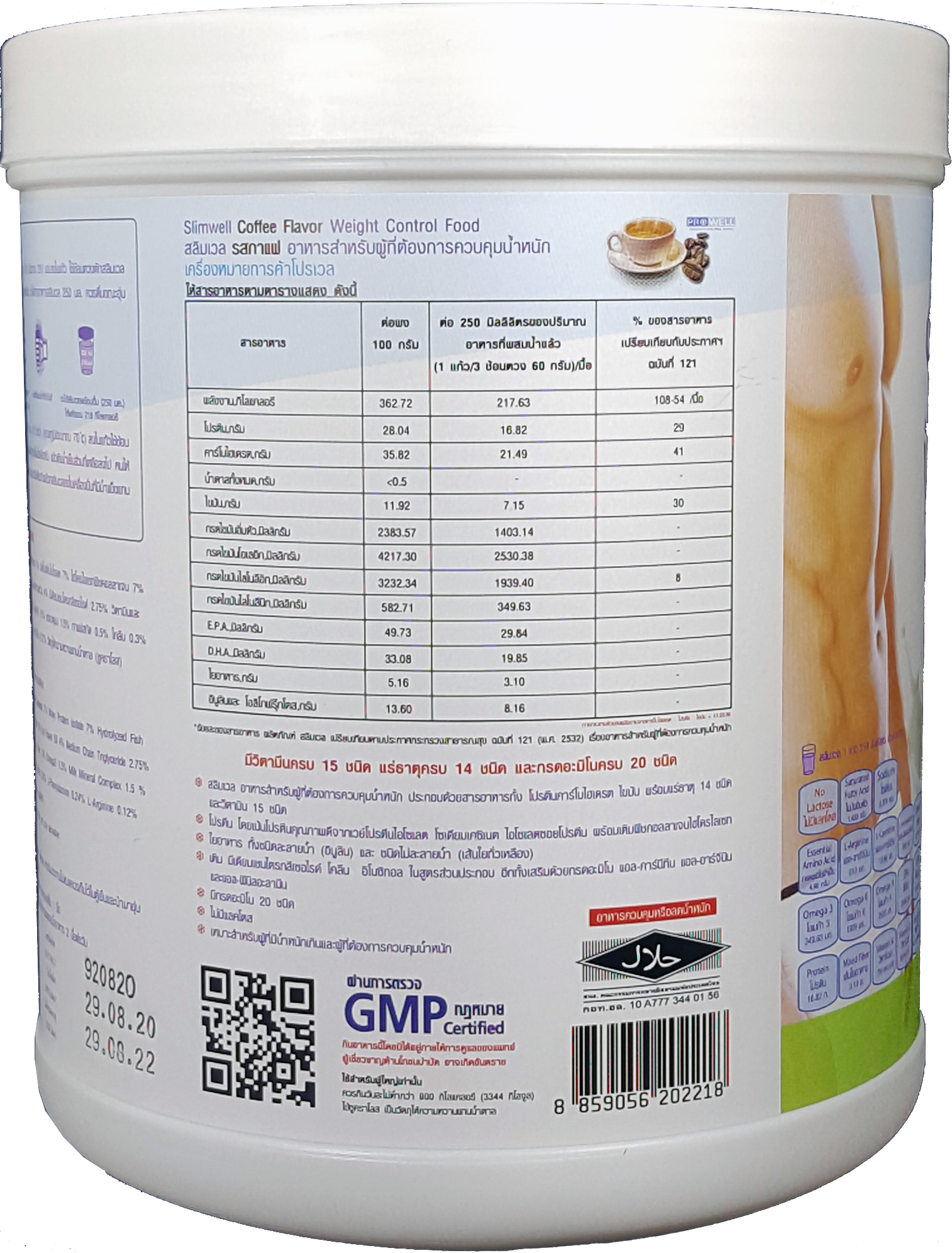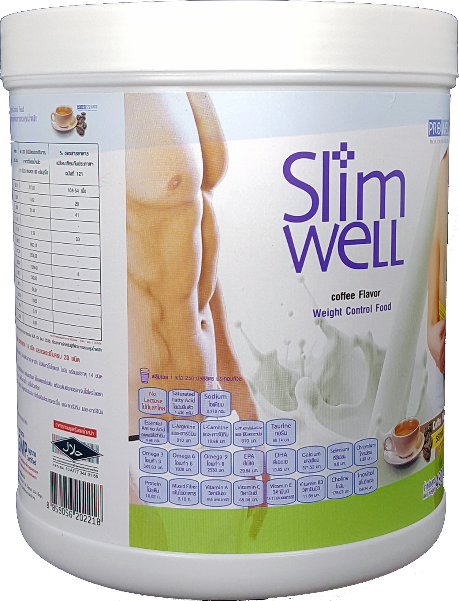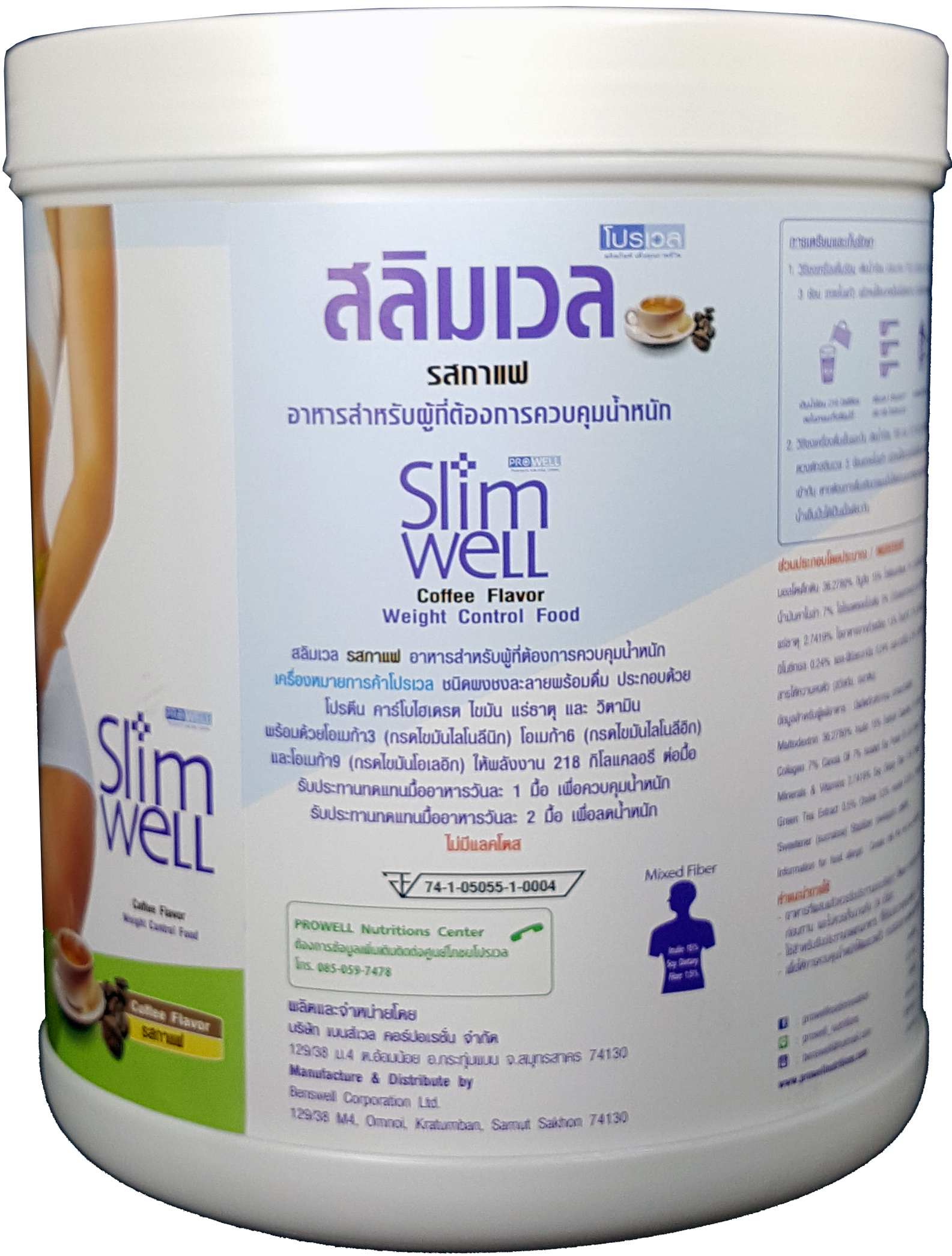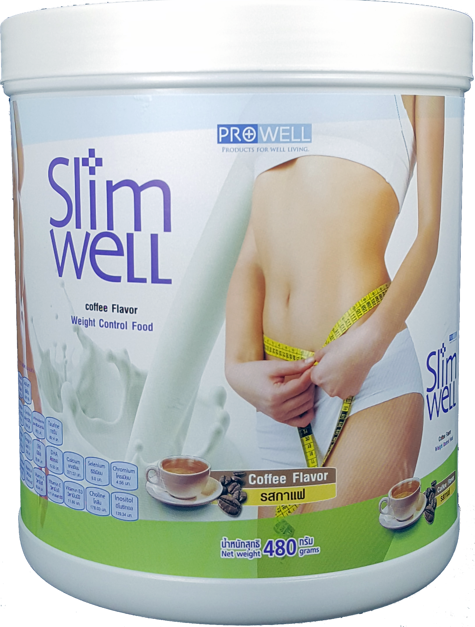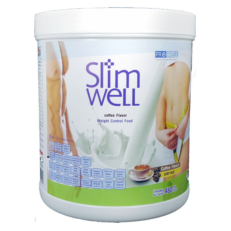 สลิมเวล (Slimwell) อาหารทดแทนมื้ออาหารชนิดผงชงดื่ม เพื่อการควบคุมและลดน้ำหนักภายใต้หลักการทางโภชนาการ ให้พลังงานเพียง 216-218 กิโลแคลลอรี ประกอบด้วยสารอาหารครบทั้ง5หมู่ มีโปรตีนและไฟเบอร์ปริมาณสูง คาร์โบไฮเดรตและไขมันต่ำ โดยเลือกสรรสารอาหารคุณภาพสูง ได้แก่ เวย์สกัดเชิงเดี่ยว(WPI) ไฟเบอร์อินูลิน น้ำมันโอเมก้าครบ 3-6-9 และ MCT คอลลาเจนสกัดจากปลาสูง แคลเซี่ยมจากนม กรดอะมิโนแบบกิ่ง (BCAA). มีวิตามินและแร่ธาตุครบถึง 29ชนิด รวมทั้ง กรดอะมิโนครบทั้ง 20ชนิด และเสริมด้วยสารช่วยเร่งการเผาผลาญสร้างพลังงาน ลดไขมัน ได้แก่ แอล-คาร์นิทีน แอล-เฟนนิลอะลานิน อิโนซิทอล โคลีน ที่ช่วยให้การลดน้ำหนักไปให้ถึงเป้าหมายโดยไม่มีผลเสียต่อร่างกายและปรากฎการโยโย่หลังเลิกรับประทาน ไม่มีน้ำตาล ไม่มีแลคโตส ไม่มีกลูเต้นท์ ขึ้นทะเบียนบัญชีสินด้านวัตกรรมไทย เลขที่ 14000012 (พย. 2560)